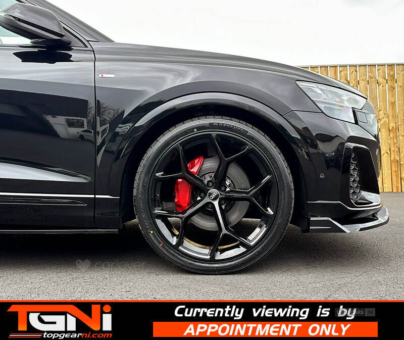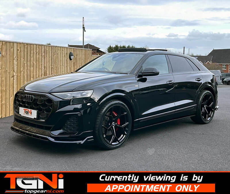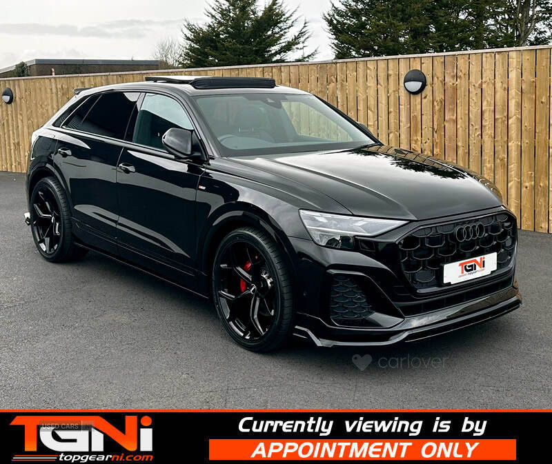 Stunning March 2025 Facelift Q8 50TDI Black Edition Quattro finished in Mythos Black with matching heated black leather interior. Covered 14k miles from new, and excellent spec to include;