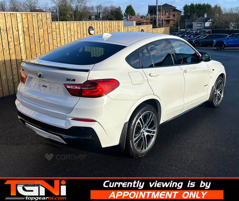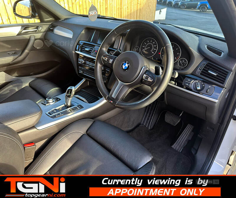 Alpine White X4 20d Xdrive M-Sport with contrasting black heated leather interior. Full years MOT, health check and serviced by ourselves, Covering 98k from new, with spec to include