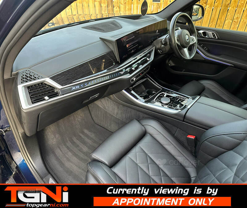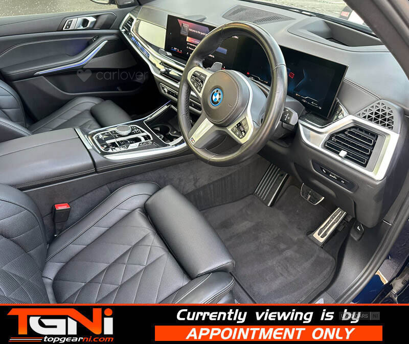 VAT QUALIFYING BIG SPEC LCI Facelift G05 50e 500+bhp Petrol Hybrid M-Sport Finished in Individual Tanzanite Blue Metallic with contrasting black Sensafin quilted comfort leather interior. Covered 54k miles by one owner from new with a full service history and will receive a full service on sale with big spec to include;