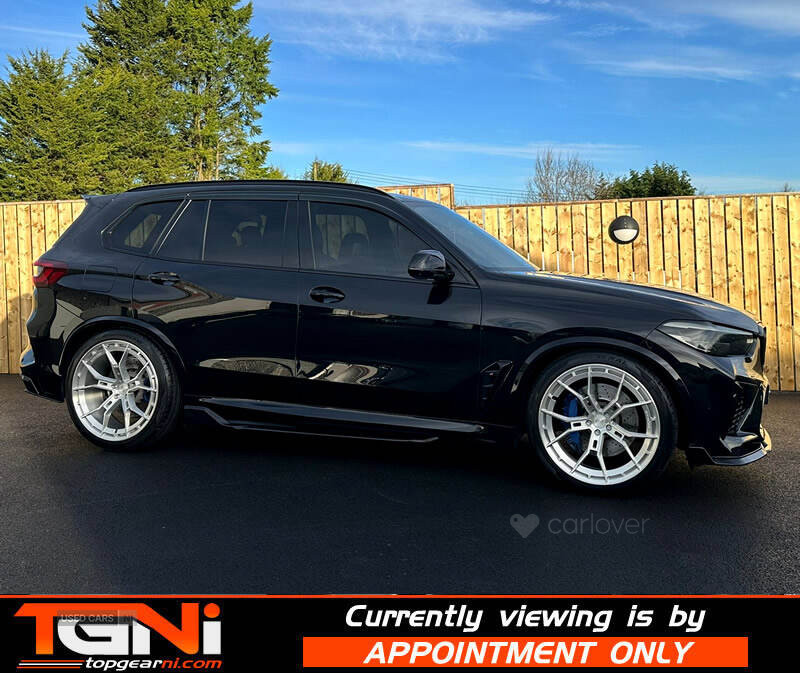 Stunning Sapphire Black X5M 620BHP with contrasting Merino heated leather interior. Covered 73k from new with great service history and spec to include;
