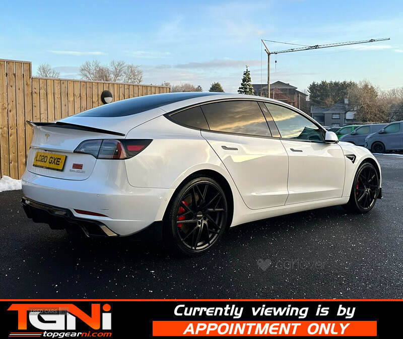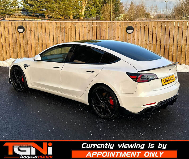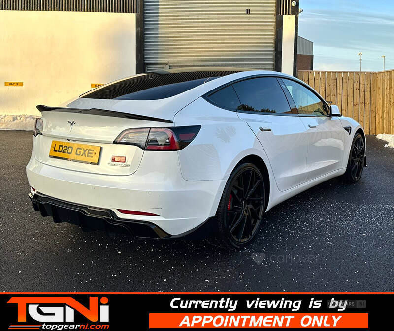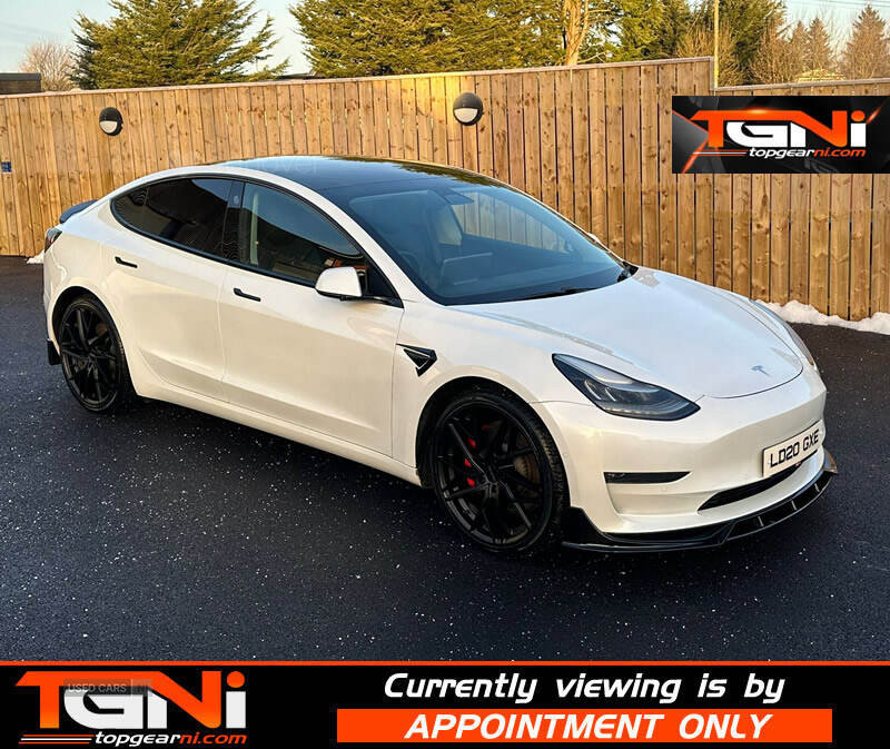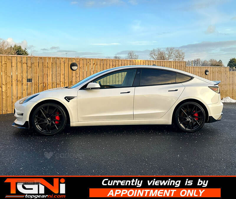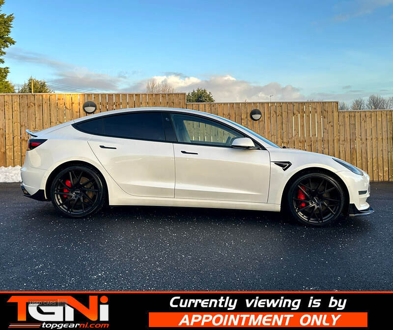 Stunning locally owned Model 3 Performance Upgrade 4WD finished in white with contrasting black heated leather interior. Producing 440BHP this dual motor performance has a spec including;