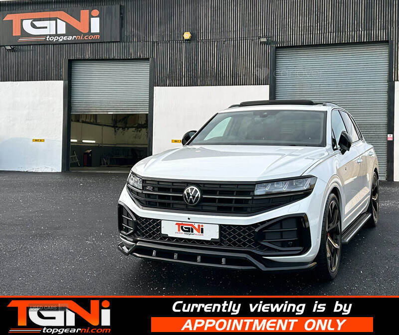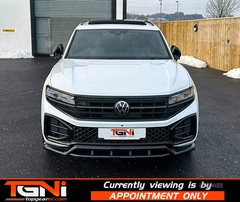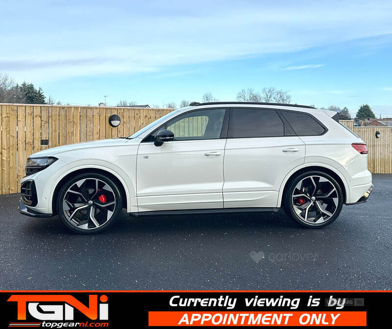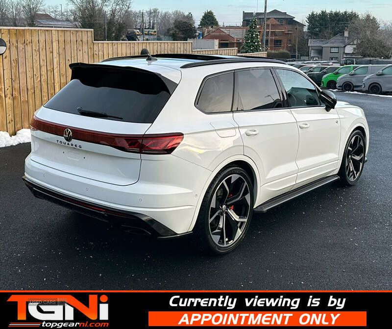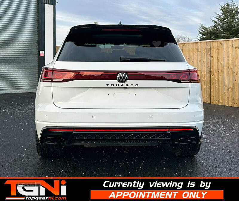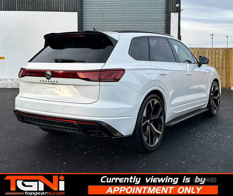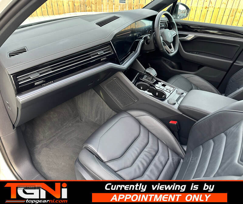 Beautiful Facelift Pure White 286BHP Black Edition Touareg with contrasting all black heated leather interior. Registered September 2023 and covering only 37k miles from new with big spec to include;