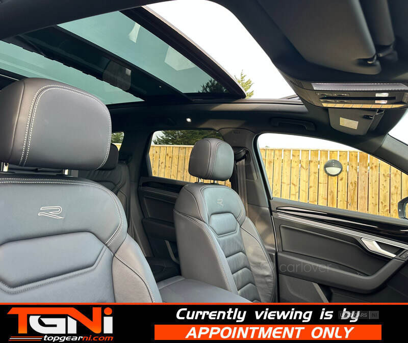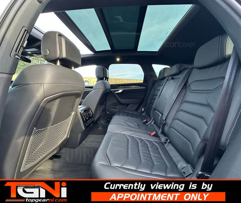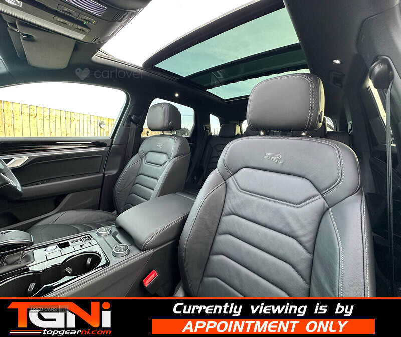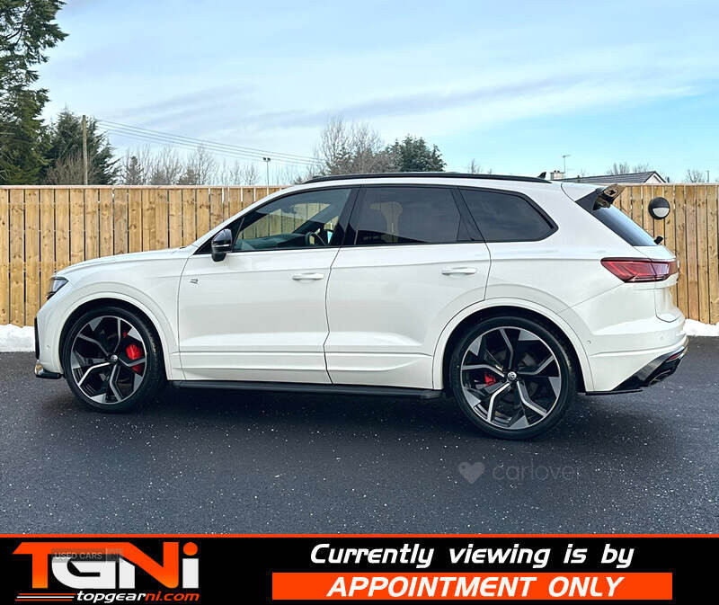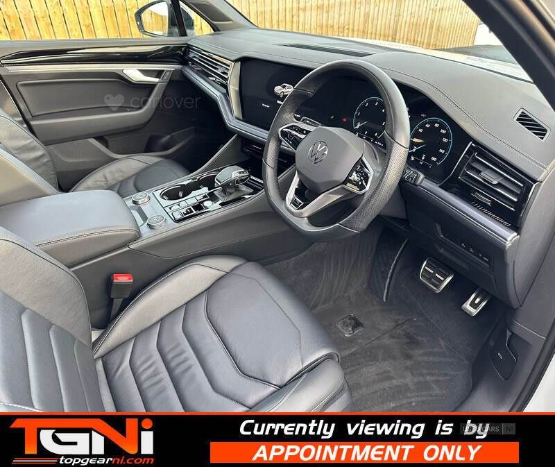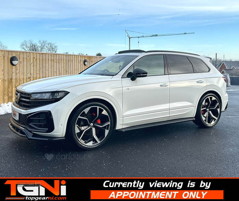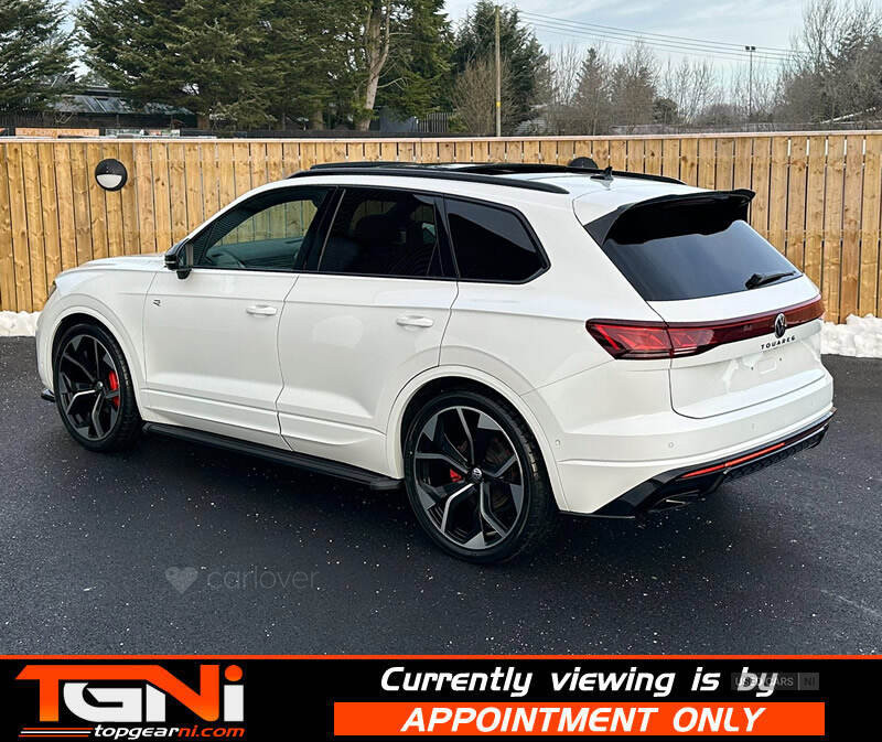 Beautiful Facelift Pure White 286BHP Black Edition Touareg with contrasting all black heated leather interior. Registered September 2023 and covering only 37k miles from new with big spec to include;